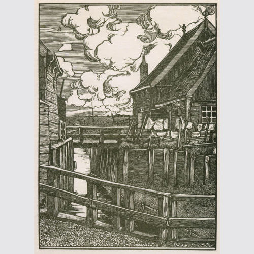 Jacobus Gerardus Veldheer (1866-1954) - Op Macken. Originalholzschnitt aus PAN V/1. Format der Abbildung: 21 x 15 cm. Blattformat: ca. 27,7 x 37 cm. Minimale Gebrauchsspuren, insgesamt sehr schöner Zustand. Entstehung um 1890.