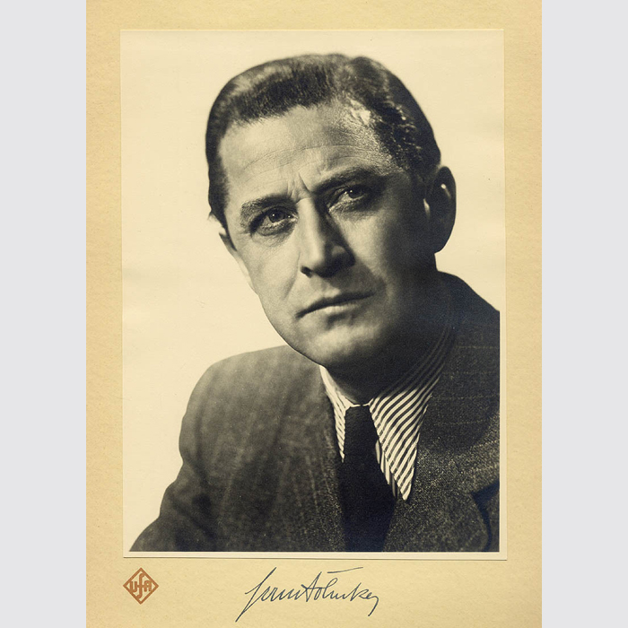 Sehr schöne Original-Aufnahme aus den 30er Jahren. Hans Söhnker, unter dem Foto von Hand signiert. Auf Original UFA-Karton am oberen Rand montiert. Format des Fotos: 22,5 x 16,5 cm. Kartonformat: 28,8 x 21,5 cm. Sehr schöner Zustand.