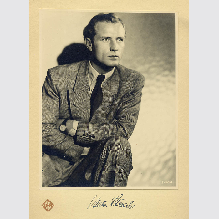Sehr schöne Original-Aufnahme aus den 30er Jahren. Viktor Staal, unter dem Foto von Hand signiert. Auf Original UFA-Karton am oberen Rand montiert. Format des Fotos: 22,5 x 16,5 cm. Kartonformat: 28,8 x 21,5 cm. Sehr schöner Zustand.