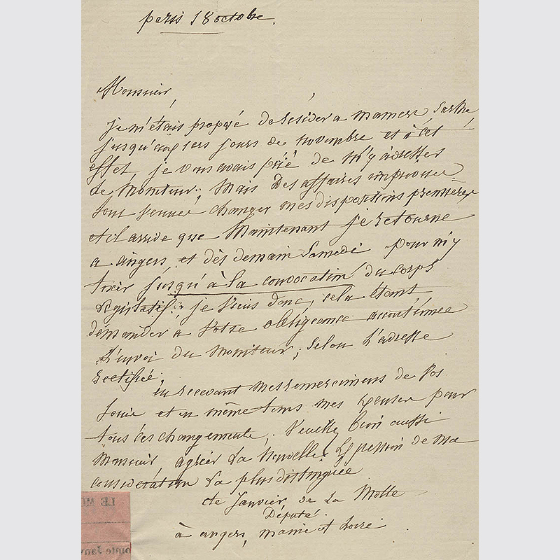 Einseitiges Dokument – Eugène Janvier de La Motte (1823-1884) est un homme politique et un haut fonctionnaire français.
