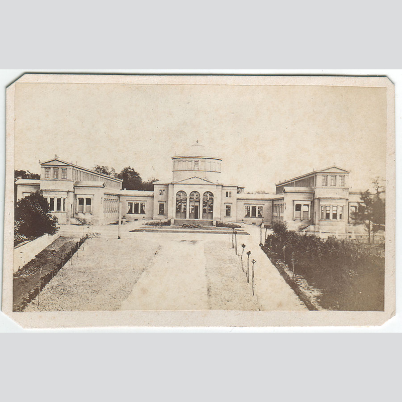 Badehaus Bad Oeynhausen bei Rehme. CDV-Format um 1865. Albumin auf Karton montiert. Seltene Aufnahme um 1865.Leichte Gebrauchsspuren, Kartonecken beschnitten, siehe Foto, insgesamt ordentlicher Zustand.