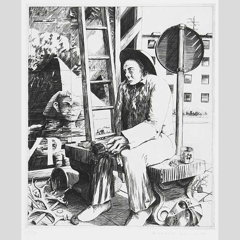 Årlin, Richard: Nachdenklicher Maler. Originalradierung 1977.