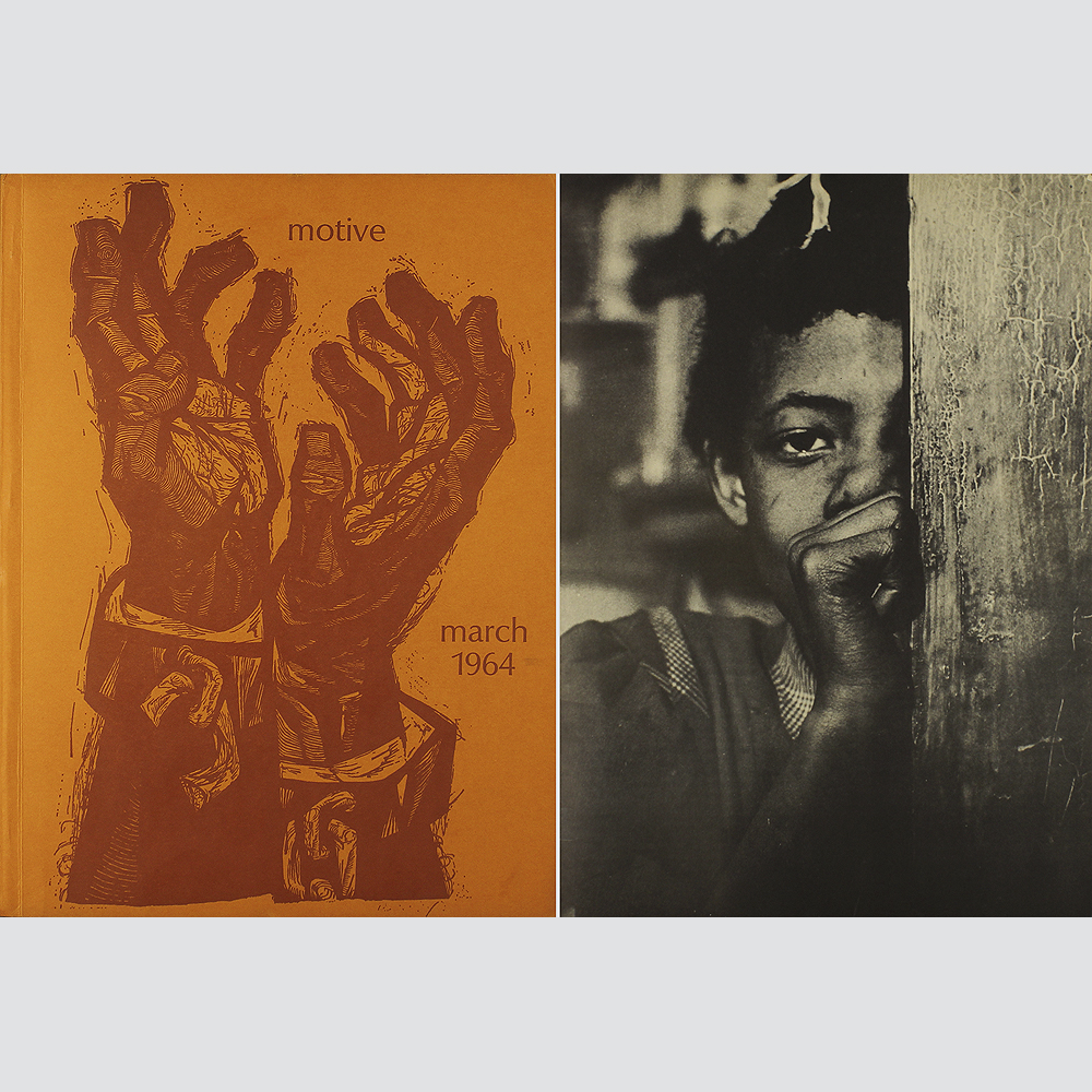 motive Magazine. März 1964. Hans Orlowski. Rassismus/Apartheid. Außerordentlich seltenes Heft des motive Magazin mit Schwerpunkt Hans Orlowski und dem Thema Rassismus/Apartheid. Original Broschur, Nashville 1964. Umfang: 64 Seiten. Format: 28,5 x 21,5 cm. Text in englisch. Mit zahlreichen Illustrationen von Hans Orlowski und anderen, teils in Originalholzschnitt. Aus dem Inhalt: Margaret Rigg: Hans Orlowski's Illustrations for "The Psalter" / Thomas Merton: The Black Revolution / James Thomas: The central jurisdiction / Apartheid unmasked / J. Preston Cole: God has not left himself without a witness... Minimale Gebrauchsspuren, schöner Zustand.